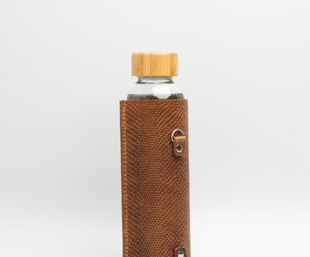 Glass Water Bottle With Leather Sleeve Crossbody Or Hand Strap On Carabiners Shop Geometric Goods Beverage Holders Bags Pinkoi